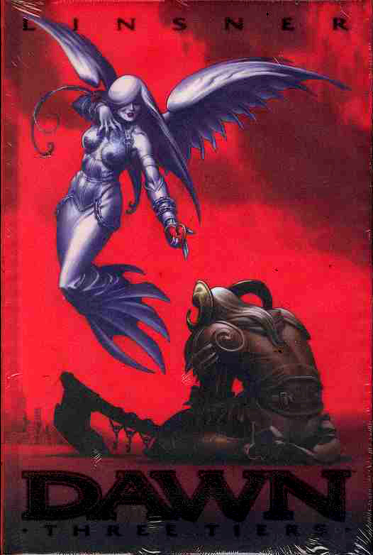 written by JOSEPH MICHAEL LINSNER art & cover by JOSEPH MICHAEL LINSNER Here is the collection you've been waiting for! JOSEPH MICHAEL LINSNER has put three long years into creating this epic work - but you get to read it all at once! In a post-apocalyptic Europa, Dawn leads New York warrior Darrian Ashoka through wars, disasters and fire. His dangerous liaisons bring him up against the three faces of the Goddess. Is Dawn a virgin, a queen or a whore? Is Darrian the earthly manifestation of Death, the Horned God? On his quest for Dawn, Darrian faces dragons, fights duels and shatters mirrors. Will Dawn ultimately make his dreams come true, or his nightmares a reality? Collects DAWN: THREE TIERS #1-6