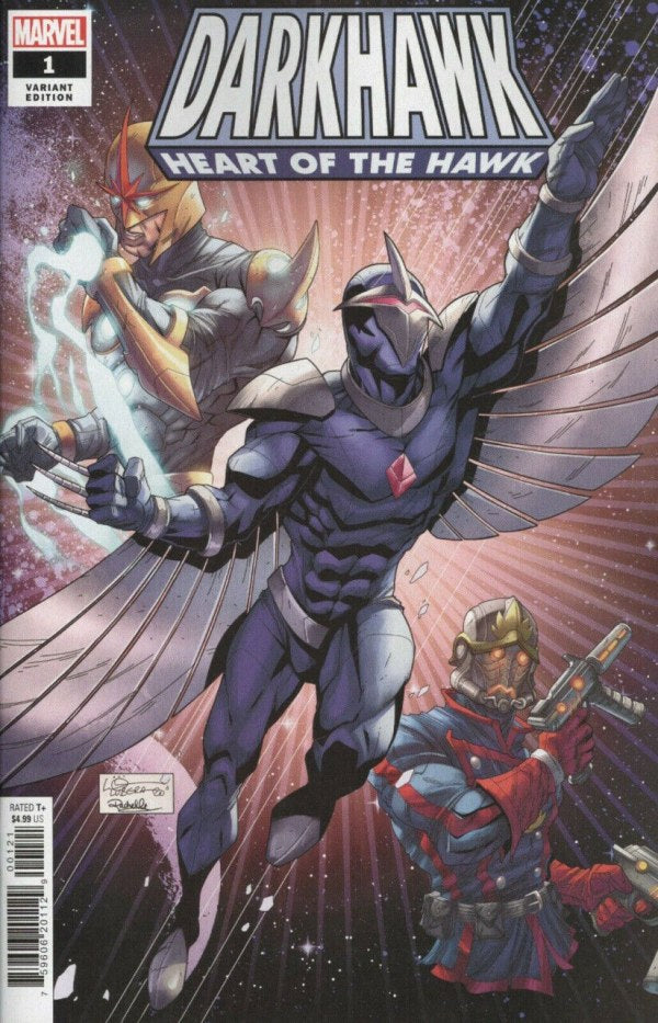 Cover by Logan Lubera. Celebrate the 30th anniversary of the '90s hottest hero in three spectacular stories! First, an untold story from Darkhawk's early days by creators Danny Fingeroth and Mike Manley! Then explore the winged hero's cosmic years by Dan Abnett and Andrea Di Vito. Finally, find out what the future holds for Darkhawk by Kyle Higgins and more! 36 pages, full color. Rated T+