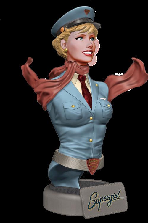 The DC Bombshells are joining the fight! In the next iteration of the popular series based on 1940s and '50s pinups, the powerful women of DC Comics are imagined as courageous WWII military officers. This handsome bust depicts Supergirl in a stylish pilot's uniform, complete with kicky scarf and her trademark optimistic grin, ready to wage war on the Axis powers from the skies. Up, up, and away, into the wild blue yonder!