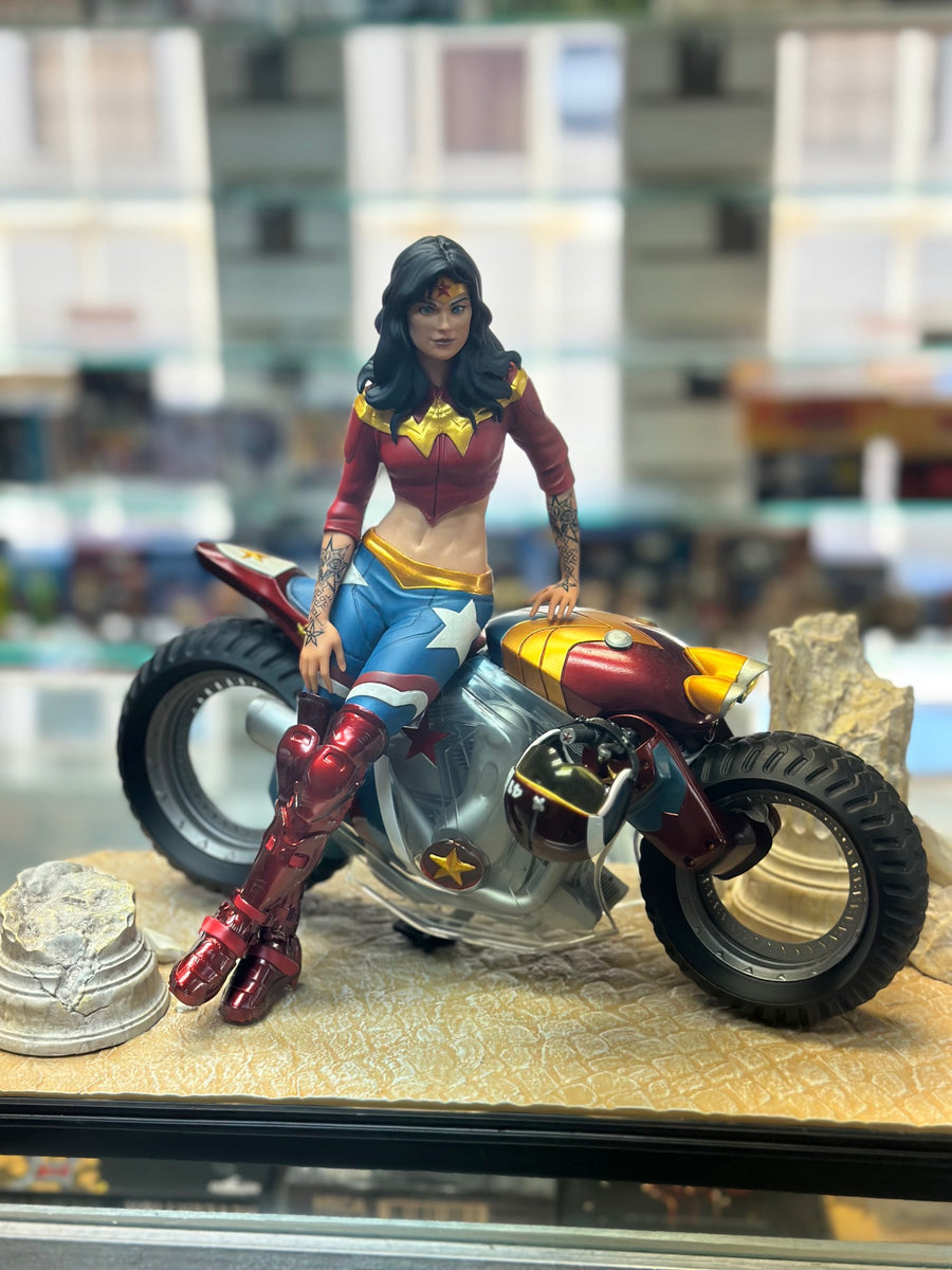 Hit the road with Wonder Woman, reimagined in this charming statue as a tough-as-nails biker.