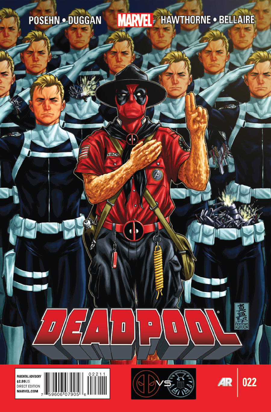 Deadpool vs. S.H.I.E.L.D.: Part 2 - Written by Gerry Duggan, Brian Posehn. Art by Mike Hawthorne. Cover by Mark Brooks • Deadpool continues his quest for revenge on S.H.I.E.L.D. for stiffing him! • Someone has been betraying S.H.I.E.L.D., and it seems to be…Agent Preston?! • PLUS: AGENT COULSON! From the hit TV show AGENTS OF S.H.I.E.L.D.!